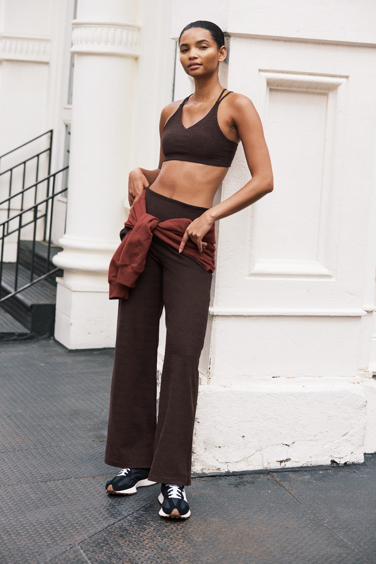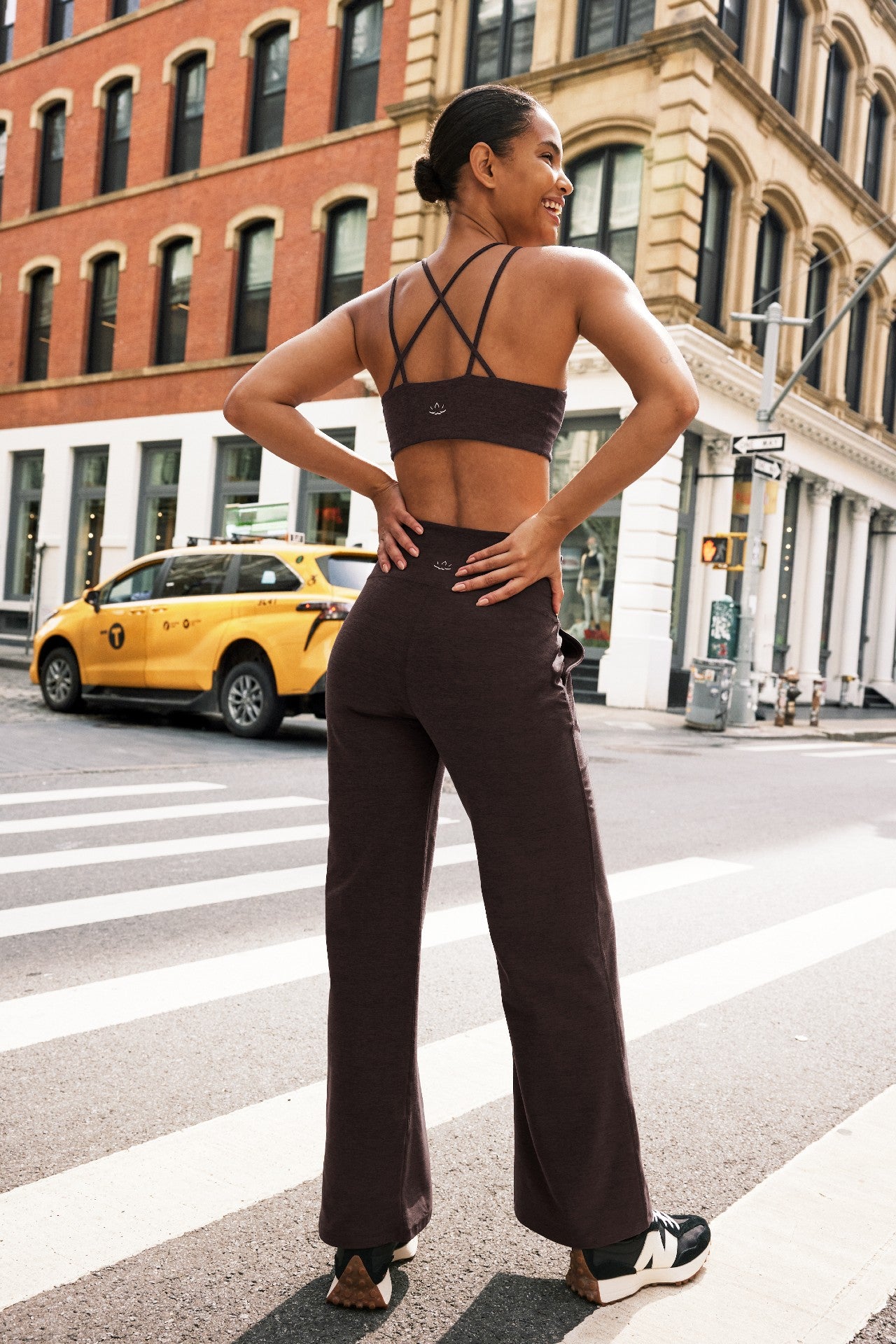 A retro tracksuit-inspired wide-leg pant? Say less. This easy, comfy design has contrast panels on the sides and front pockets to keep essentials close. Form, meet function. Pair with the matching tank and you're off to the races.
