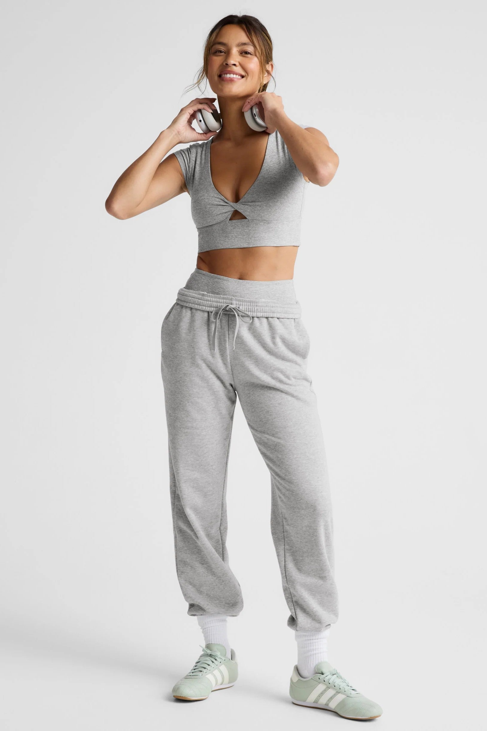 It's all in the details. We added a delicate twist in center of the scoop neck to mix up your look for the studio and beyond.